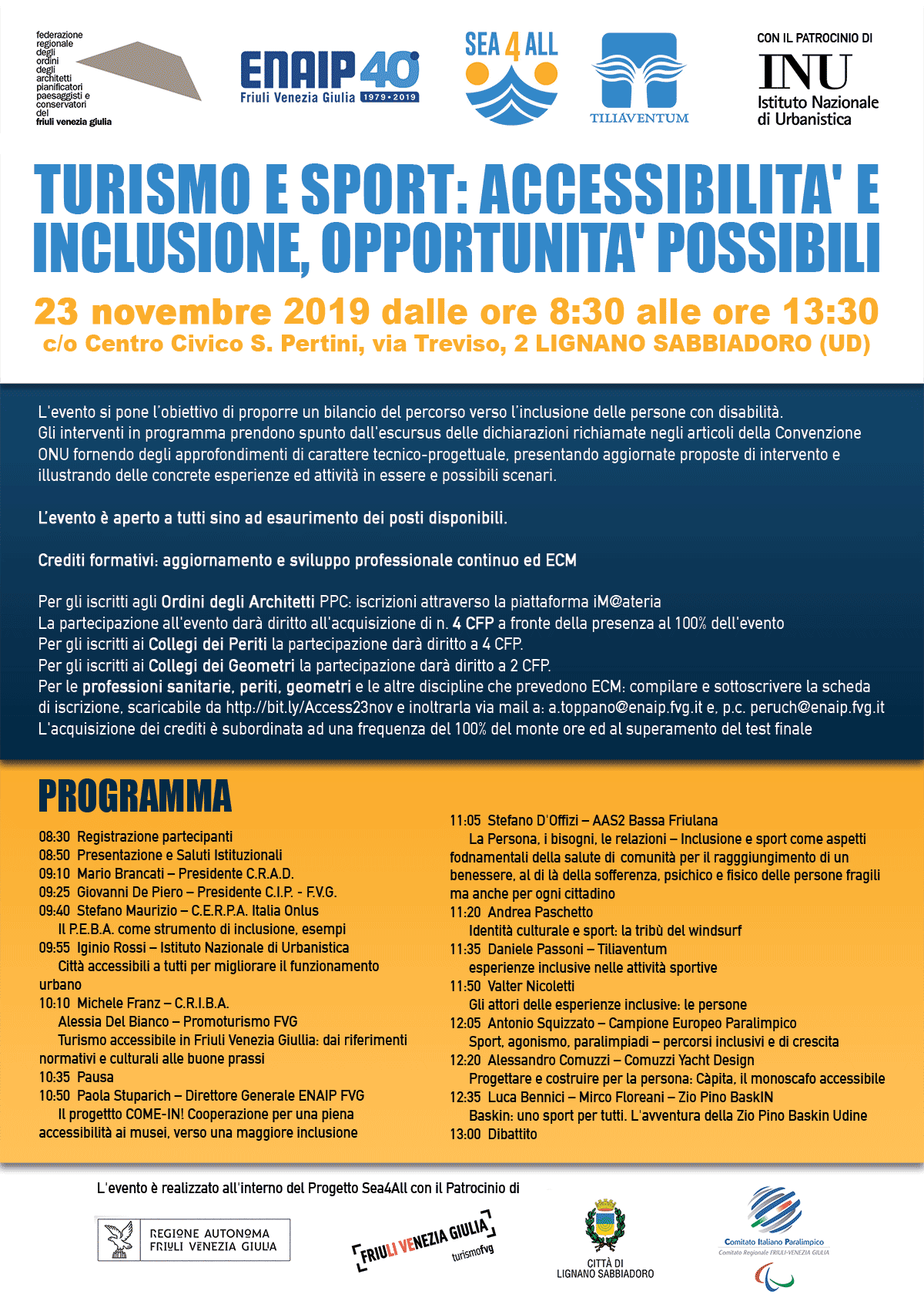 organizzato dalla Federazione regionale degli Ordini degli Architetti Pianificatori Paesaggisti e Conservatori del Friuli Venezia Giulia, dall'associazione sportiva dilettantistica Tiliaventum e da EnAIP FVG.