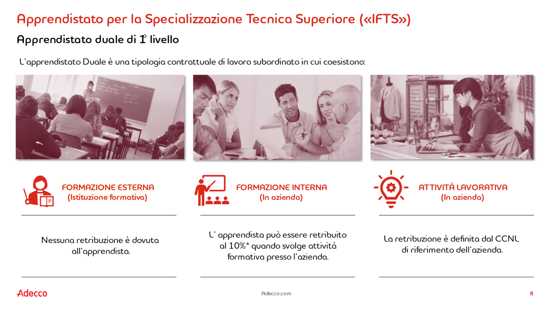 Adecco si occuperà del processo di attraction, valorizzando al meglio l’opportunità formativa, e selezione dei candidati proponendo fin dal primo giorno di formazione il