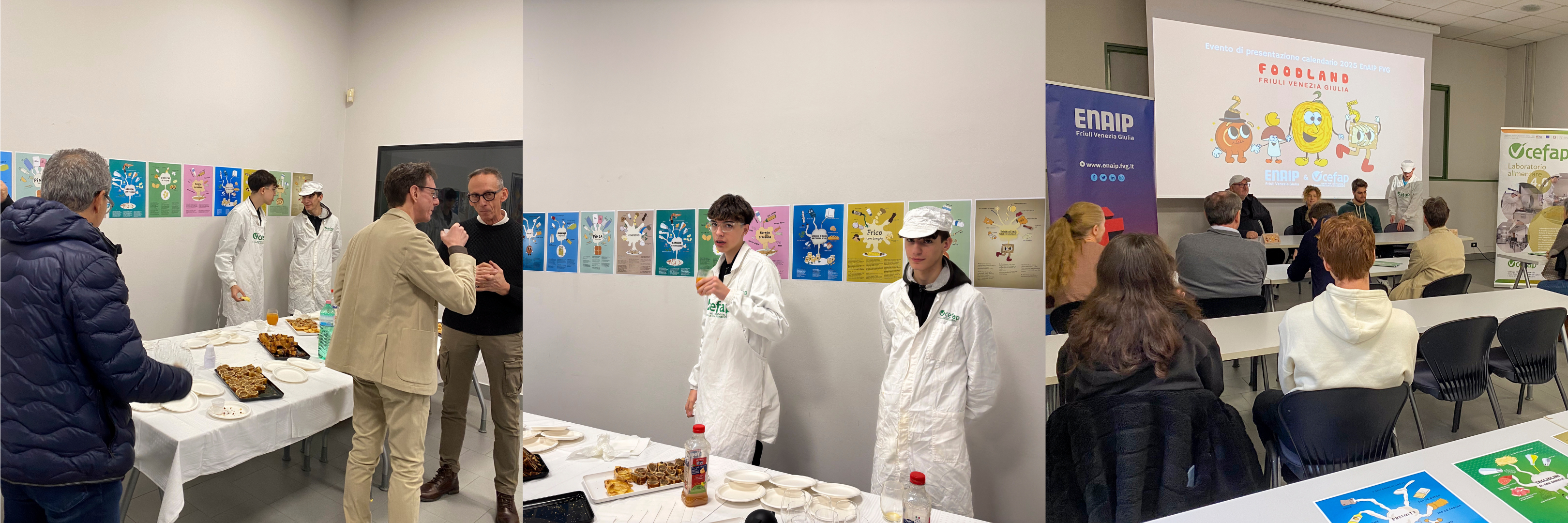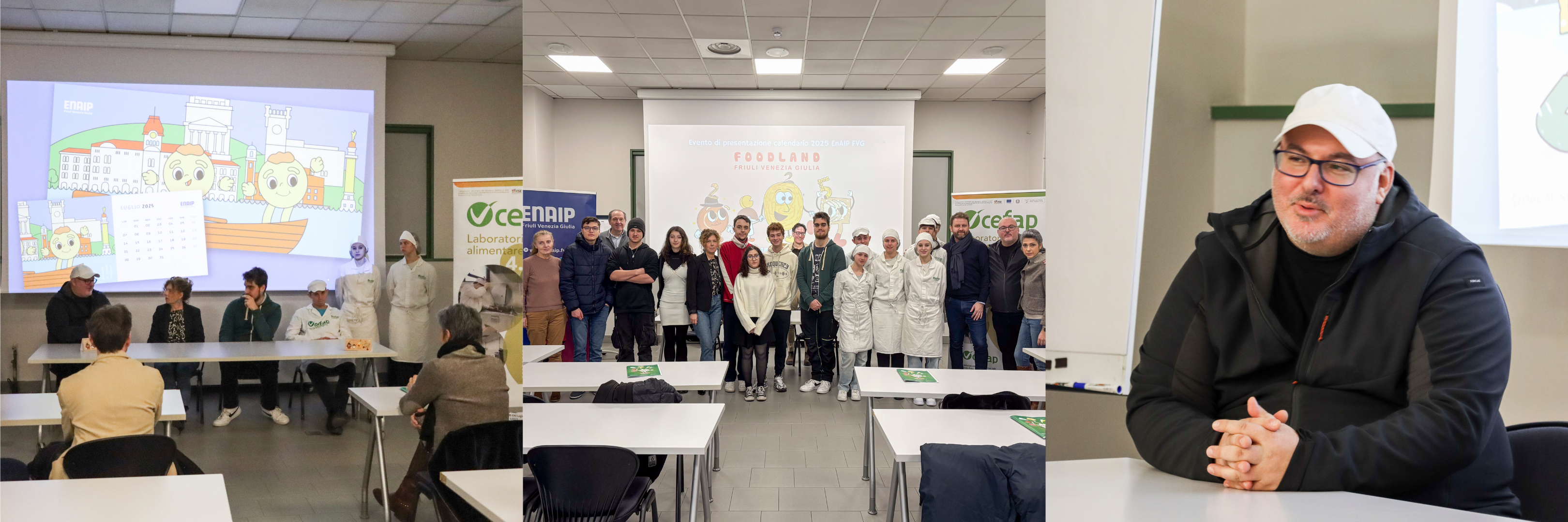 Oggi, presso la sede ENAIP di Pasian di Prato, si è tenuta la presentazione ufficiale dei calendari. Un momento speciale, reso ancora più coinvolgente dalla partecipazione degli studenti, dei docenti e dei tutor del CeFAP, che si sono messi all’opera per realizzare alcune delle ricette presenti nel calendario. Tra queste, la pinza, il presnitz, la gubana e le sfogliatine con mela e cannella, alcune rivisitate con l’aggiunta di marmellate e confetture artigianali preparate dai ragazzi stessi.
