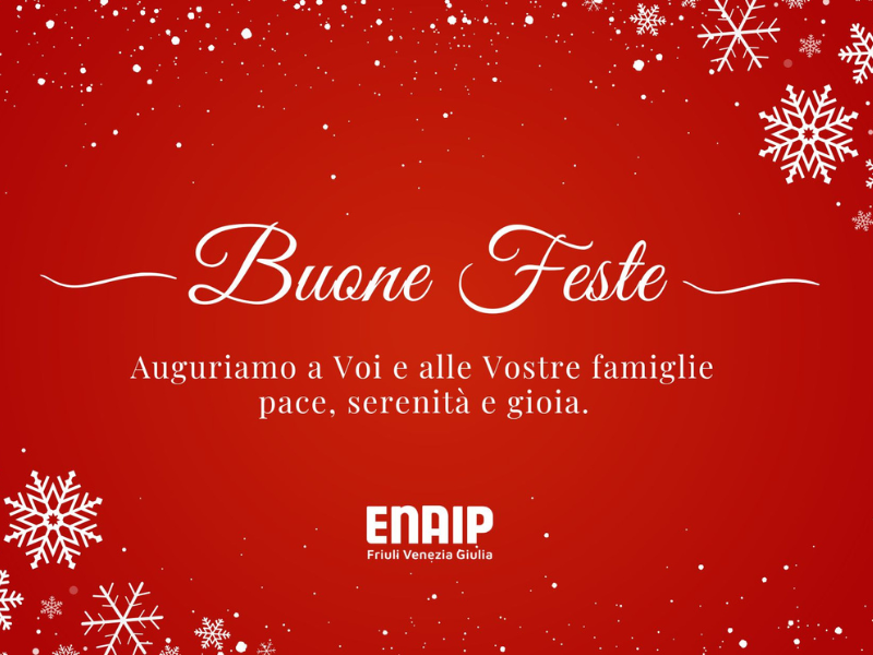 In occasione delle Festività natalizie le sedi EnAIP Friuli Venezia Giulia rimarranno chiuse da lunedì 23 dicembre 2024.